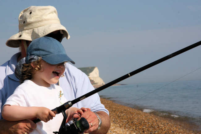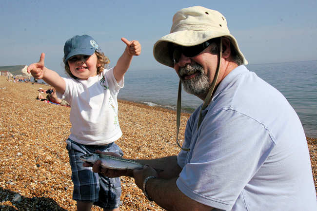 Picture of Alex and me. Click for larger imageMany years ago as a small boy, I remember going fishing for the first time with my father; just a short session on the River Lea in North London not far from where we were living. I recall the anticipation as we baited the hook with maggots and then as we waited for the float to bob down. The excitement I felt when the float went, and I landed my first fish, a small Perch – more by luck than judgement. It was a very special moment for me and for my father. Years later, I took my two daughters, Kerry and Katie fishing at Brighton Marina and remember the excitement they felt when we caught their first fish. Again, a very special moment and memory.