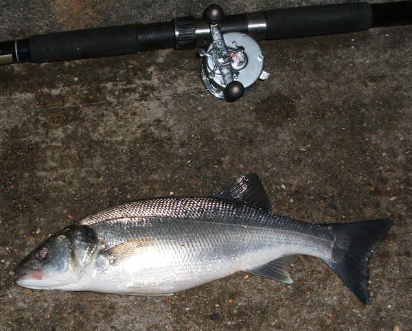 bass pictureFished Brighton Marina East arm on Wednesday evening to get the 10.30pm high water. Arrived at about 6.30pm and settled myself in bay 20. Spent a little while enjoying some sport catching mackerel on light spinning gear to be used as bait for the serious stuff.