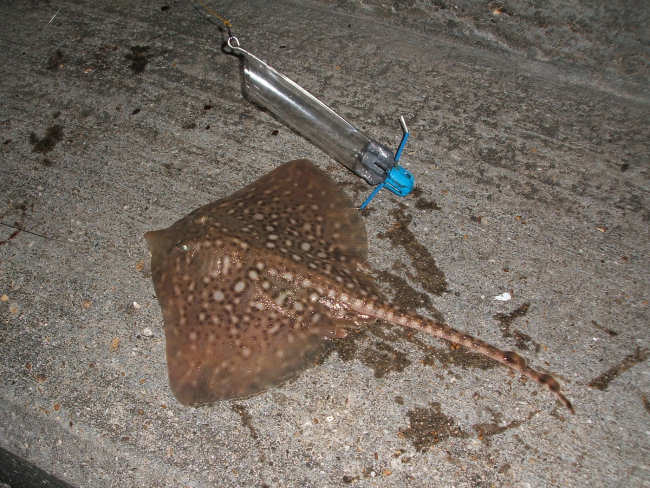 By the end of the evening, for my efforts, I was rewarded with one pout but determined to have a least one half reasonable fish, I stayed after everyone else had gone. Shortly after Rob left, I brought in a small thornback ray which went for the peeler crab on the DVice rig. I really like rays, there’s just something about them that appeals to me. It’s just a shame that for some reason, this venue and Seaford produce numerous small rays but never anything of a decent size. Quite why this is, I don’t know but maybe I should do some research into the matter and try and find out why. I should make the effort to travel to better ray spots but there is nowhere relatively near for that produces decent rays in larger numbers apart from maybe Hampshire. Widewater at Shoreham does throw them up from time to time but not enough to go there specifically for them.